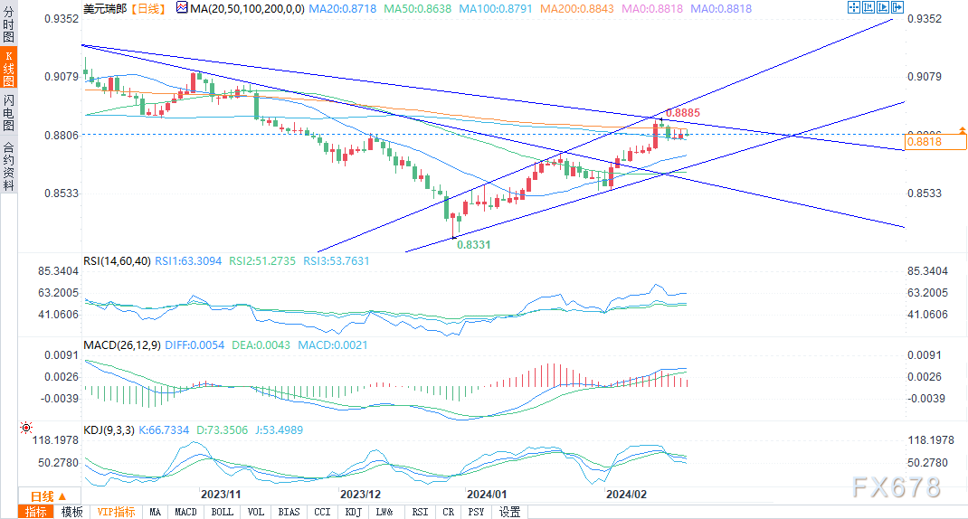 FXTM注册官网行情资讯美元兑瑞郎短期上涨前景脆弱,长期阻力0.8888等待突破
