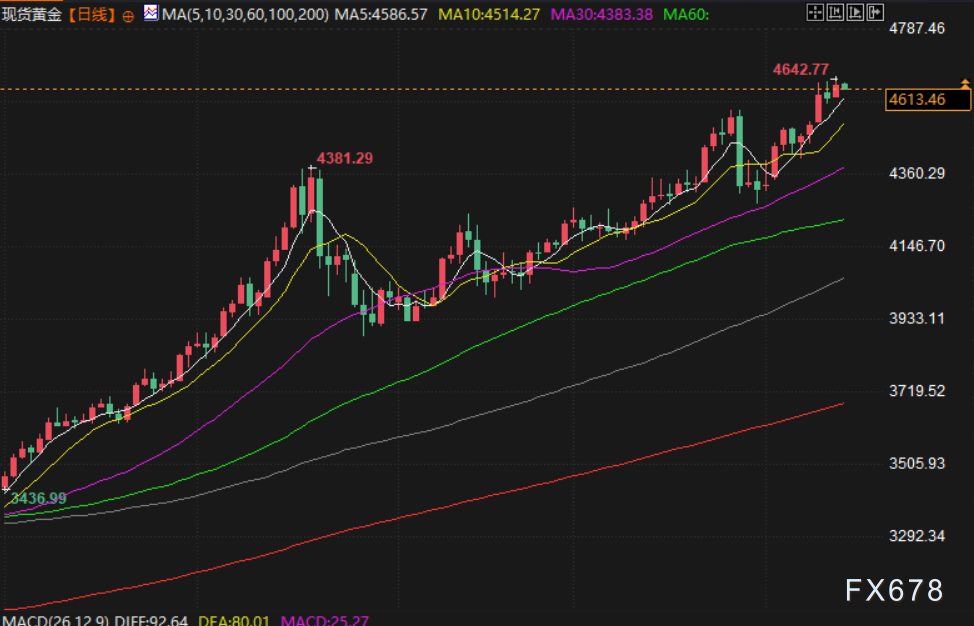 贵金属市场周三延续强劲涨势。现货黄金价格创下每盎司4642.77美元的历史新高,现货白银亦上涨,触及93.67美元的纪录高位。分析师指出,市场正处于结构性牛市,多重因素共同驱动了此轮上涨。