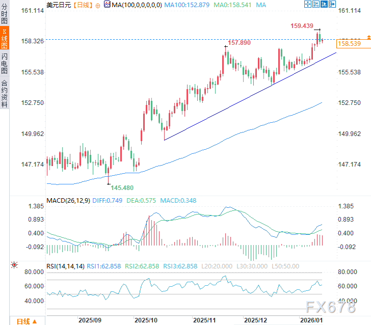 周四(1月15日)亚欧时段,美元兑日元守住了前一交易日的跌幅,于158.55附近窄幅震荡。前一交易日美元兑日元一度触及159.44的近一年半高点,但隔夜回落,因日本财务大臣片山皋月再次发出口头警告,这在一定程度上减缓了日元的贬值速度。