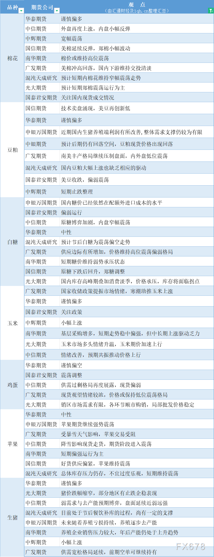 期货公司观点汇总一张图:2月23日农产品(棉花、豆粕、白糖、玉米、鸡蛋、生猪等)