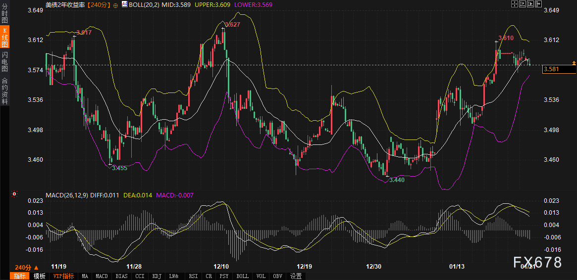 2年期美债收益率(反映对近期货币政策的预期)走势则显得更为纠结。