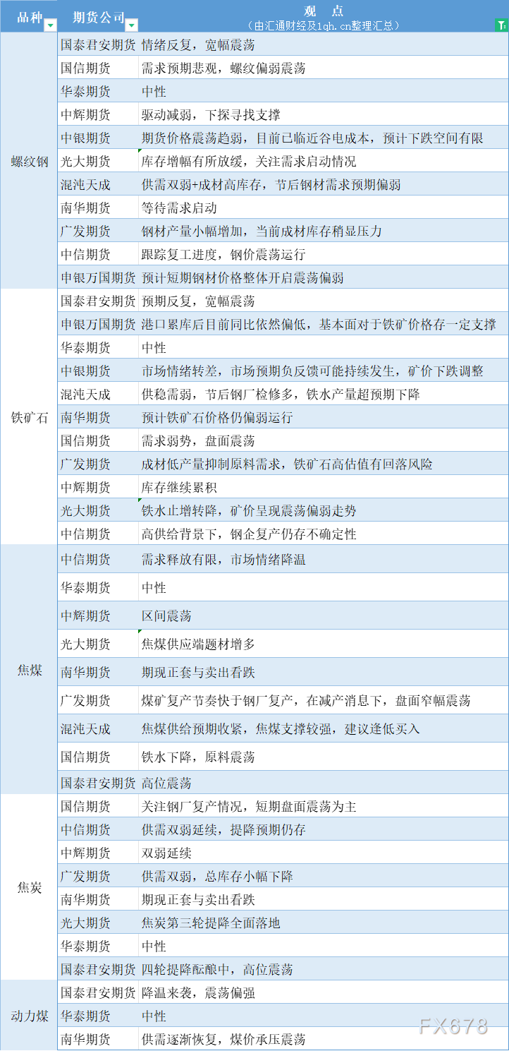 期货公司观点汇总一张图:2月26日黑色系(螺纹钢、焦煤、焦炭、铁矿石、动力煤等)