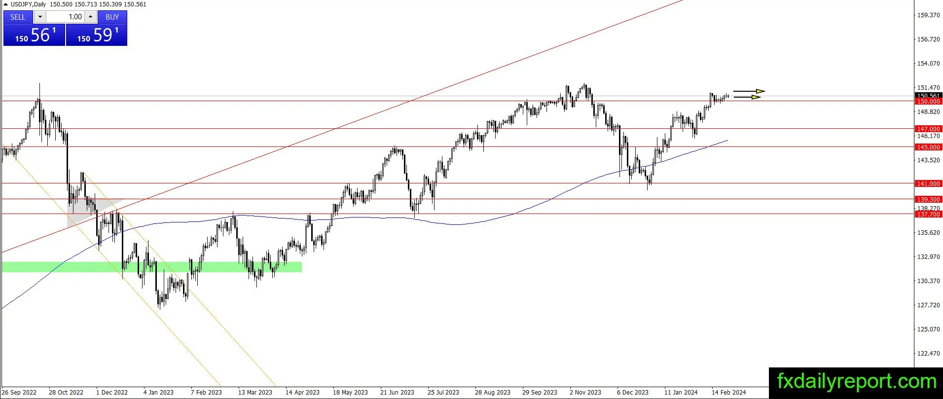 USD/JPY 目前在接近 150.00 的位置上没有太多波动。该货币对仍然在该点附近进行整理。与之前相同,如果出现上涨并且货币对设法形成一个较高的摆动高点,那么中长期的看涨趋势仍将维持。与此同时,如果货币对下跌并设法收于日均线200以下,则趋势可能转为看跌。