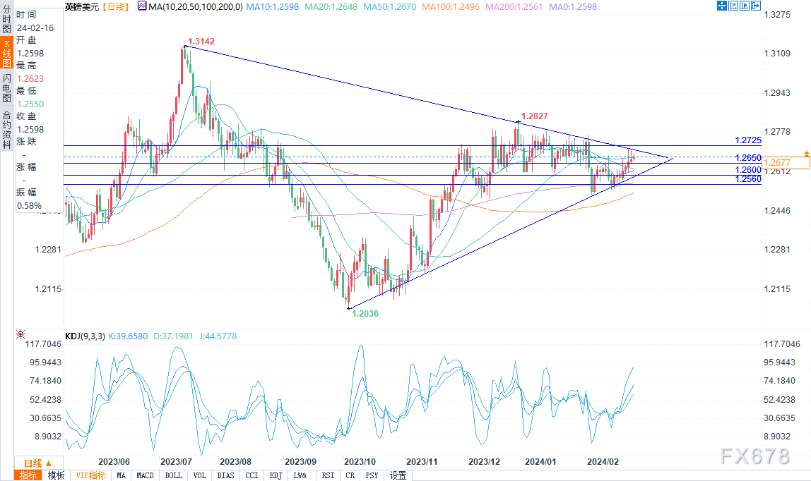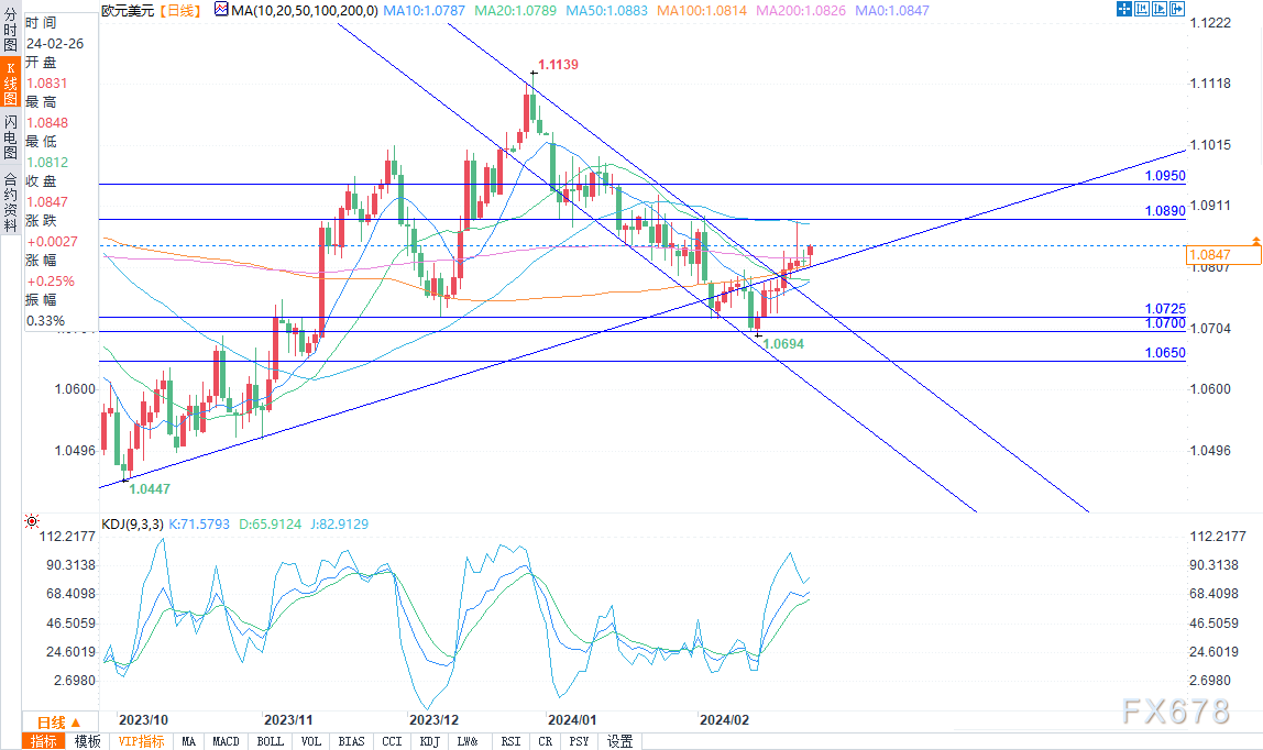 欧元区通胀数据将于周五(北京时间3月1日18:00)公布,预计CPI将从1月份的2.8%降至2.5%。尽管通胀朝着欧洲央行2%的目标进一步降温,数据显示欧元区经济持续低迷,但欧洲央行一直不愿谈论降息,这为欧元提供了一些支撑。