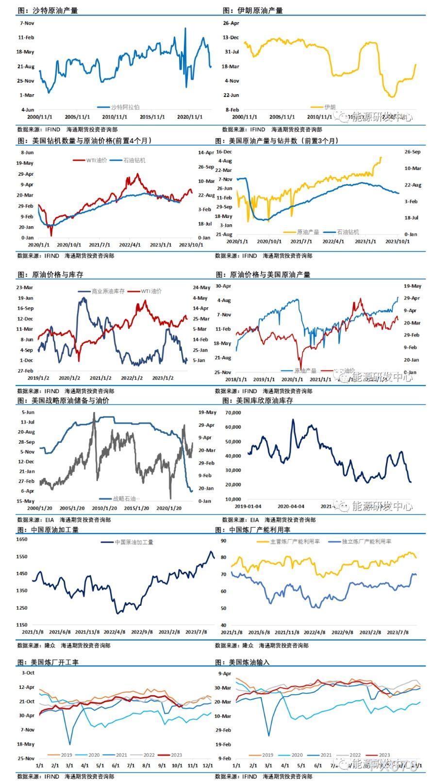 作为巴以冲突直接参与者哈马斯的背后金主,伊朗在巴以冲突中扮演的角色非常关键,目前来看伊朗成为代表阿拉伯世界发声的主要国家,并对该国实施石油禁运,并警告以色列不要入侵加沙,否则可能引发其他方面加入战斗。虽然到目前为止伊朗的举动更多是呼吁层面,但还是招致了美国为代表的西方国家欲重新收紧对伊朗的制裁,制裁力度如果重新影响到石油供应,那将继续冲击油价。伊朗原油今年以来产量恢复迅速,在前期对其制裁有松动阶段,其原油产量持续快速恢复,数据显示2023年伊朗的石油产出增速将仅次于美国,据伊朗方面表示,目前伊朗的石油产量超过330万桶/天,伊朗石油部长此前称由于中东局势,预计油价将达到每桶100美元。为了缓解市场因中东局势对供应的担忧,供应端本周另一个关键变化是美国将暂时取消针对委内瑞拉石油和天然气行业的一些关键制裁,此前委内瑞拉政府与反对派就总统选举达成协议,美国对协议表示欢迎。委内瑞拉总统马杜罗表示委内瑞拉强势回归石油和天然气市场,从目前市场对委内瑞拉原油生产情况预测制裁取消后短期委内瑞拉有望提升20万桶/日的能力。对于伊朗的呼吁以及美国取消对委内瑞拉制裁,欧佩克消息人士称,该组织没有计划立即采取行动或召开紧急会议。此前欧佩克多个成员国强调欧佩克不参与政治,不应将石油作为武器。