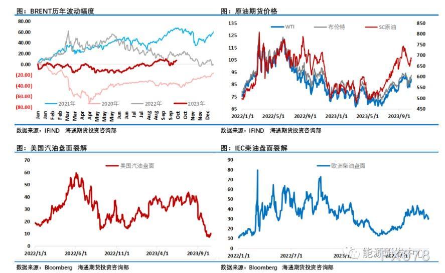 10月的前三周成为今年以来油价波动最为剧烈的阶段。10月7日巴以冲突爆发之后,油价从低位反弹了10美元,地缘冲突主导的这轮上涨抹去了10月初油价创下的年内最大周度跌幅,让油价重新回到年内高位区域,出现的走势几乎超出了所有投资者或者机构的判断。在在欧佩克+减产推动供应偏紧背景下,发生在中东地区这个全球最核心原油供应区域,巴以冲突成功激发的延续了市场对供应端的担忧,在此之前资金甚至已经结束了对供应端减产题材的炒作,大量投机净多头寸进行了减仓离场。但这场冲突显然改变了油价波动节奏,虽然到目前为止绝大多数投资者认为冲突会局限在巴以二国之间,原油市场供应也没有受到实质性影响,但是对于巴以冲突的进展投资者仍是高度紧张,任何风吹草动都会对油价起到推涨作用,原本对油价后市持谨慎甚至悲观预期的资金也不再看空,至少现阶段巴以局势仍有变数之际选择了观望。从周末最新消息来看,在美国为首的西方国家施压之下,巴以冲突降温概率较大,哈马斯开始释放美国人质,另有消息称美国和以色列官员们正在权衡在没有哈马斯的情况下,加沙地带的未来可能性,并讨论了在联合国支持下建立临时政府的问题。