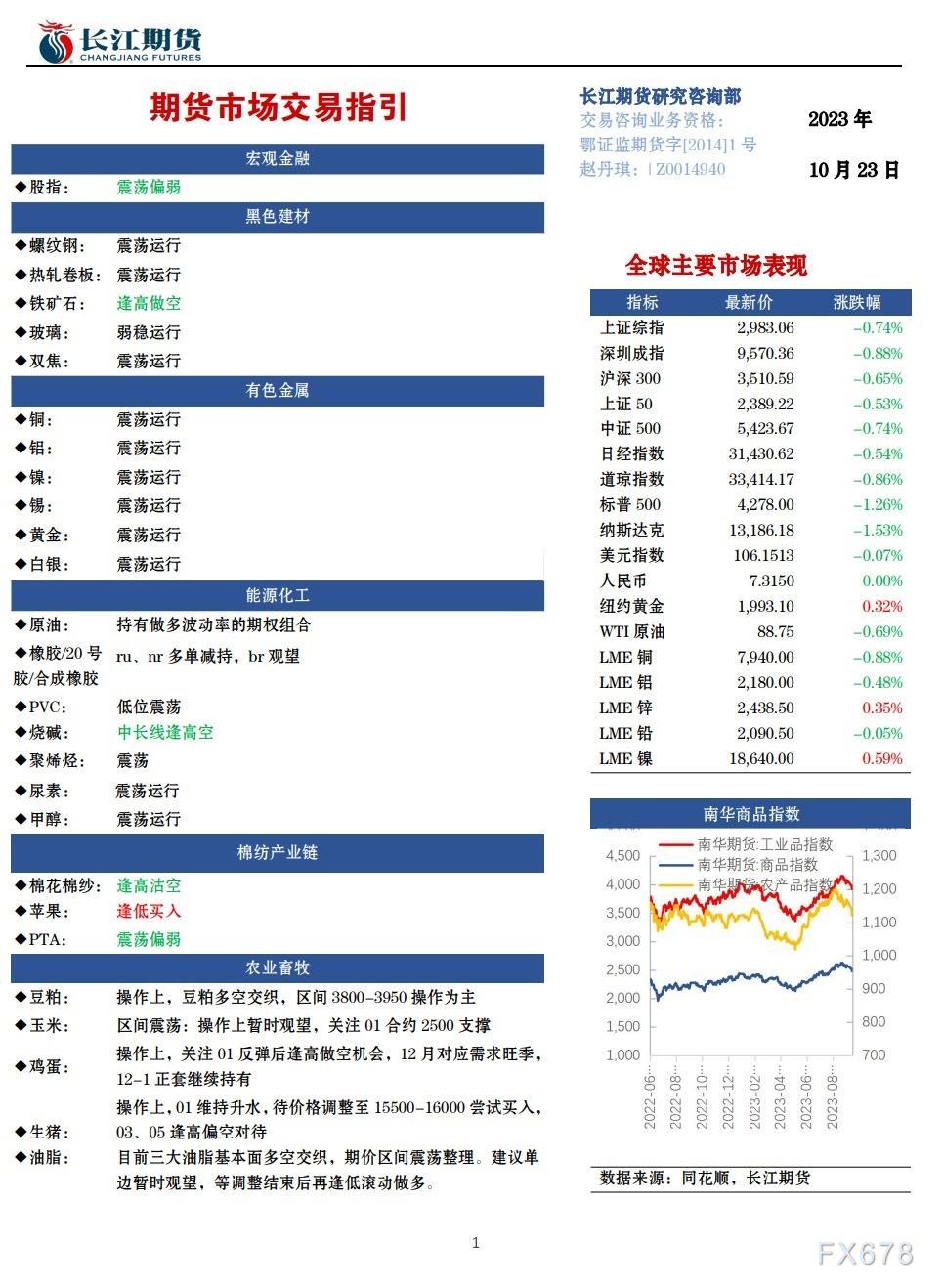 以下是长江期货10月23日对能源化工、黑色建材、有色金属、棉纺、农业畜牧操作指引。