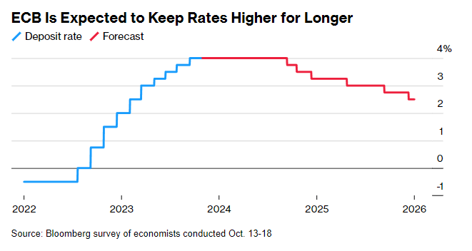 在其他地区,欧洲央行可能会维持利率不变,以色列央行将会在冲突爆发后做出第一个政策决议,智利政策制定者可能会降低借贷成本,而俄罗斯和土耳其的可能会实施大幅度的加息。