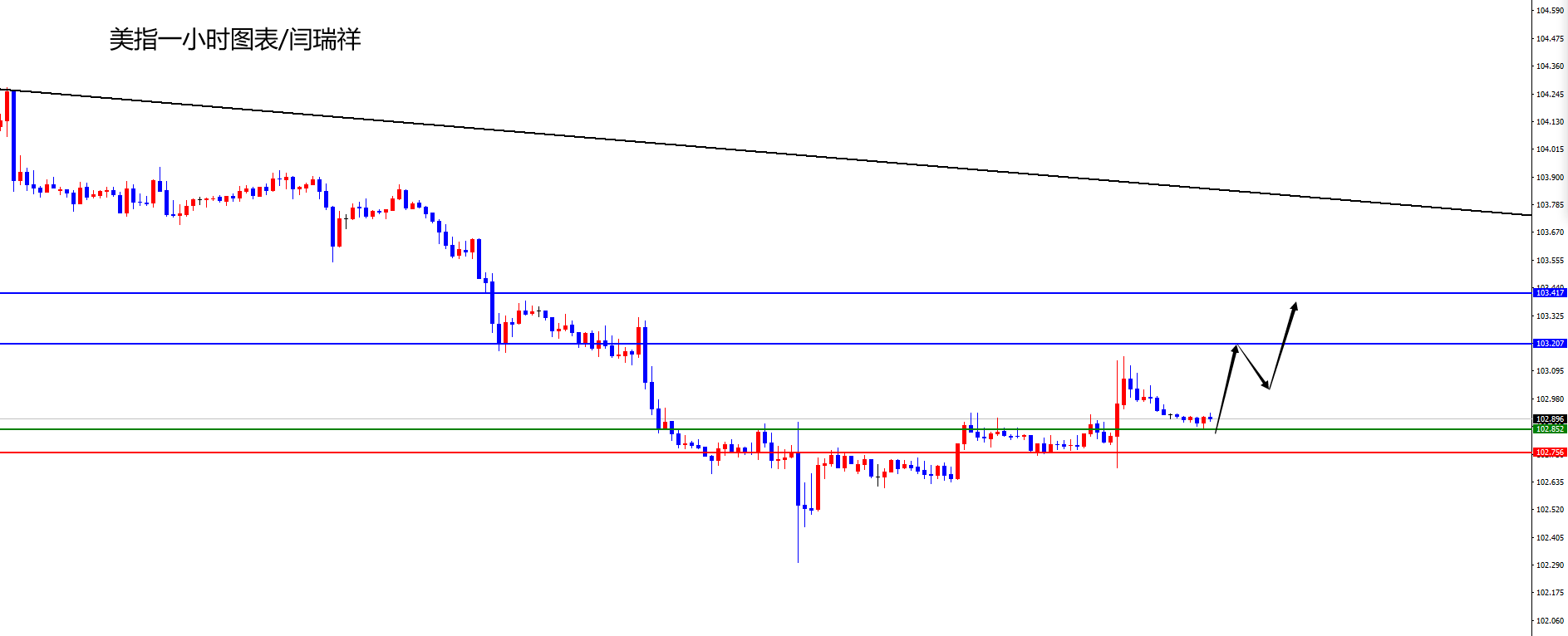 美指102.75-85区间多,防守5美金,目标103.20-103.40