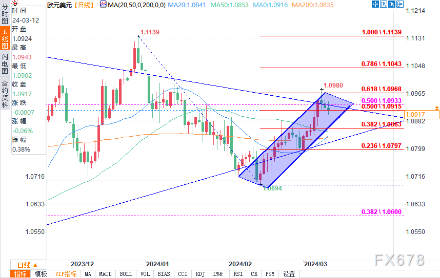 周二公布的美国CPI通胀数据意外回升,美国2月份的核心CPI(不包括食品和能源成本)较一月份增长了0.4%,与去年同期相比增长了3.8%。美元指数盘中有上涨迹象,欧元/美元小幅转跌。