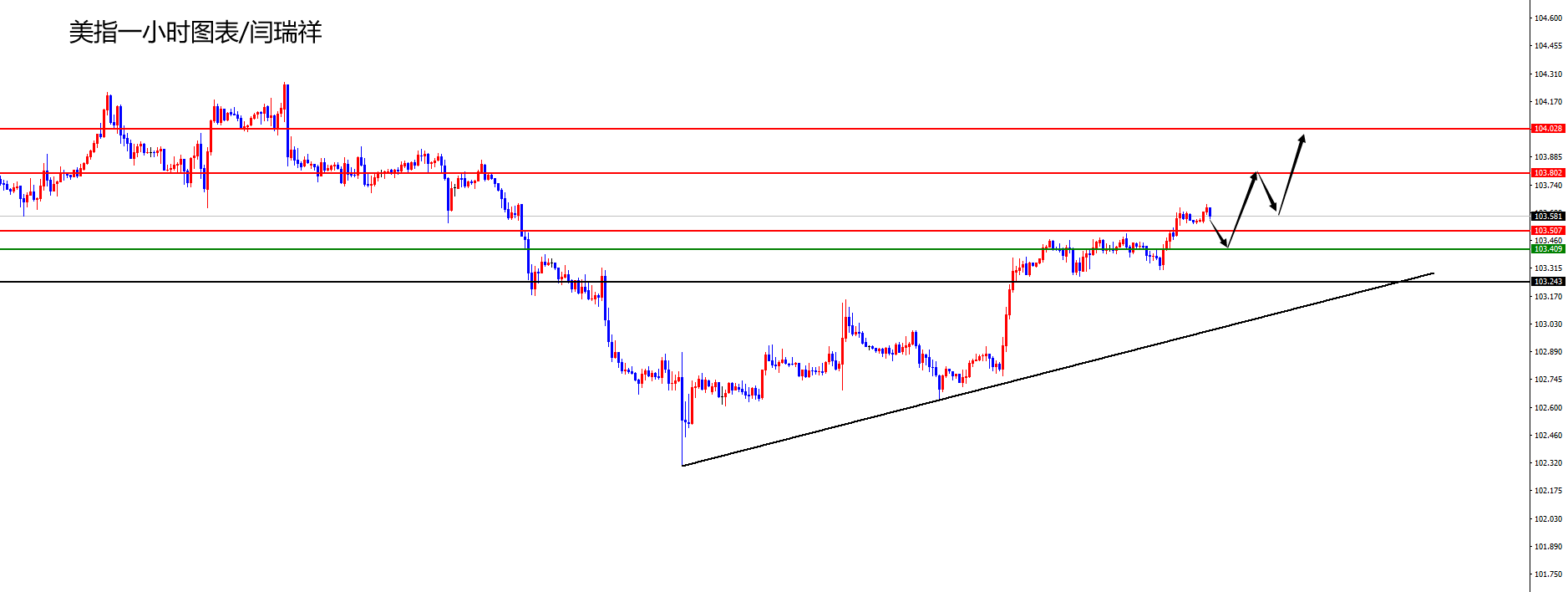 美指103.40-50区间多,防守5美金,目标103.80-104