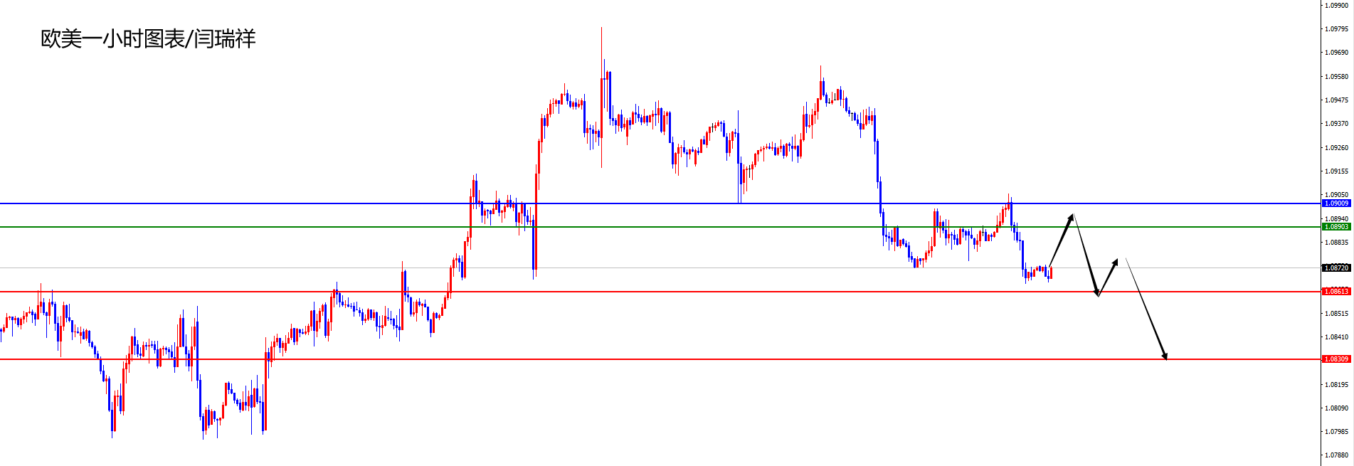 欧美方面,周一欧美价格总体呈现下跌的状态。当日价格最低下跌至1.0865位置,最高上涨至1.0905位置,收盘于1.0865位置。回顾周一欧美市场表现,早间开盘后价格短线震荡后向上修正,随后价格进行刺破上周五高点位置,但是价格没有站稳而是冲高回落,晚间再度跌破上周低点位置并且大阴收尾,并且价格收盘在日线阻力位置下方,表明后续市场整体依旧偏空,所以操作上继续逢高空对待,上方暂时关注1.0890-1.0900区间阻力,下方则关注1.0860-1.0830区域。