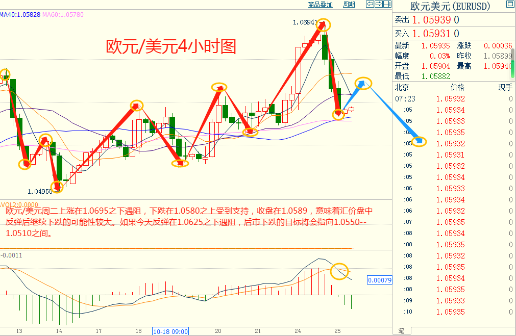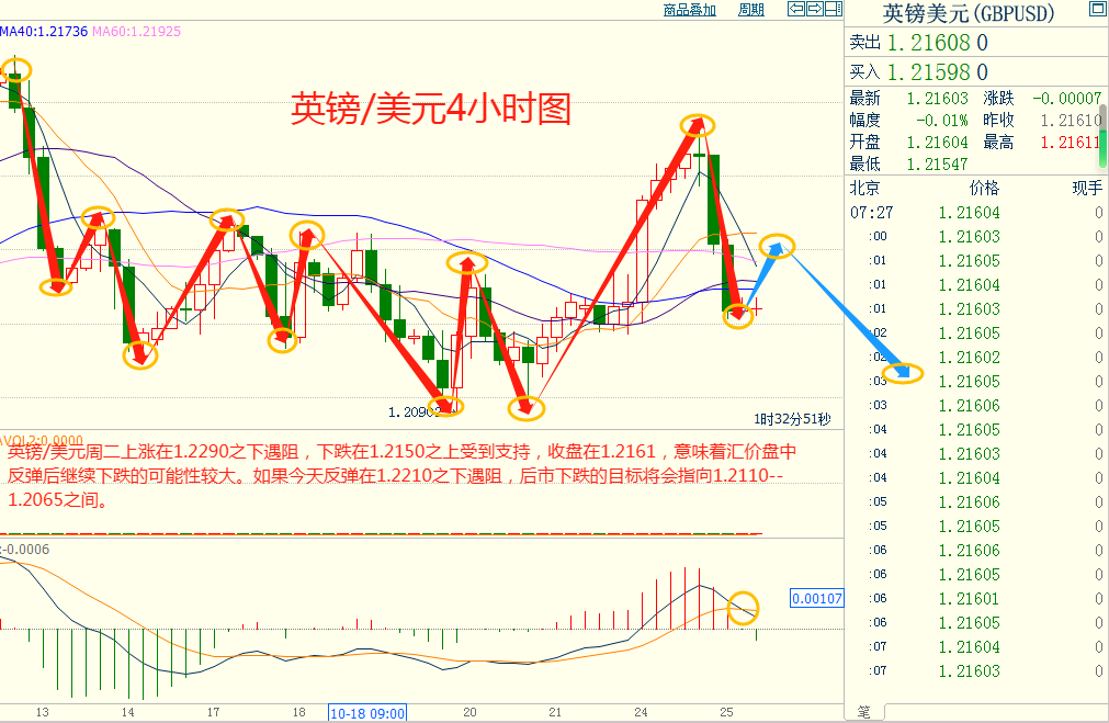 欧美周二下跌在1.0580之上受到支持,上涨在1.0695之下遇阻,意味着欧美短线上涨后有可能保持下跌的走势。如果欧美今天上涨在1.0625之下遇阻,后市下跌的目标将会指向1.0550--1.0510之间。今天欧美短线阻力在1.0620--1.0625,短线重要阻力在1.0660--1.0665。今天欧美短线支持在1.0550--1.0555,短线重要支持在1.0510--1.0515。