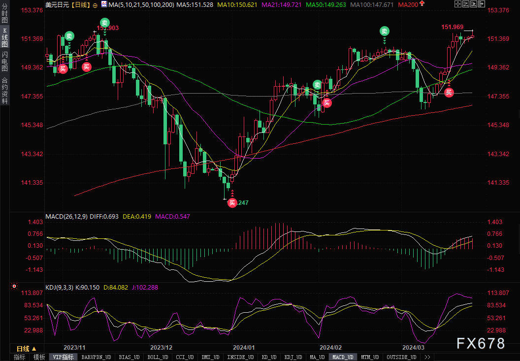 美元/日元汇率于周三(3月27日)亚市震荡走高,盘中最高触及151.97,刷新了近34年来的新高。这引发了日本官员的“口头干预”,日本央行行长也发出了强硬表态。