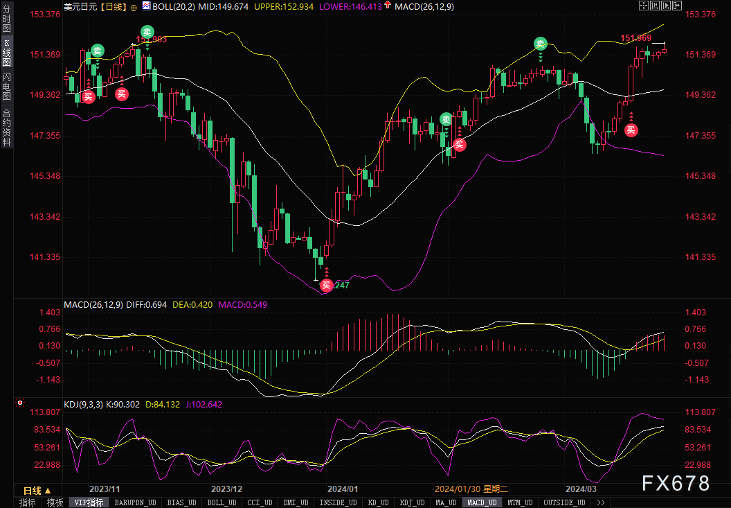 周三(3月27日)亚市盘中,美元/日元短线显著上扬,最高触及151.97,为触及1990年以来最高水平,因此前日本央行官员称考虑到通胀前景,目前金融环境将保持宽松。分析人士警告称,日元大跌提高了日本当局的干预风险。