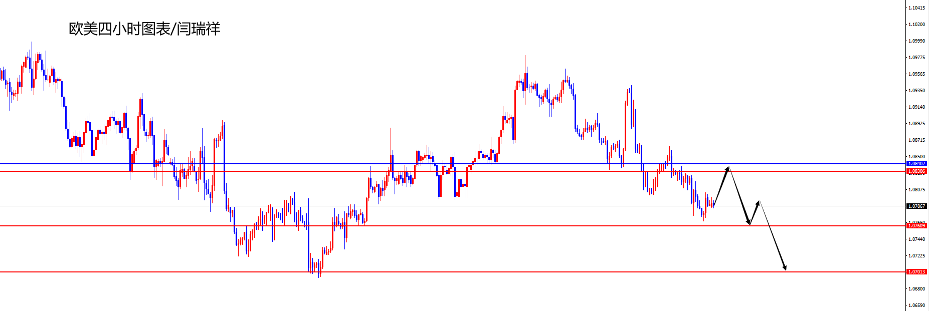 欧美1.0830-40区间空,防守40点,目标1.0760-1.0700