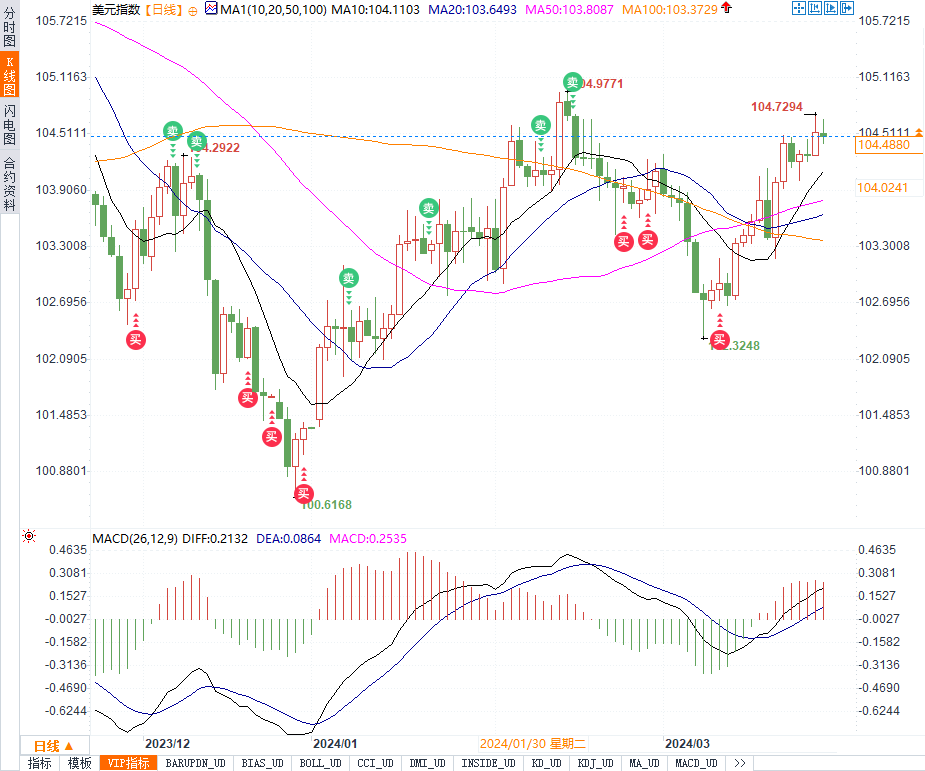 截至报告发出时,美元指数微幅下跌至104.53,跌幅为0.01%。这表明市场对美国通胀数据的解读对美元汇率产生了一定的影响。