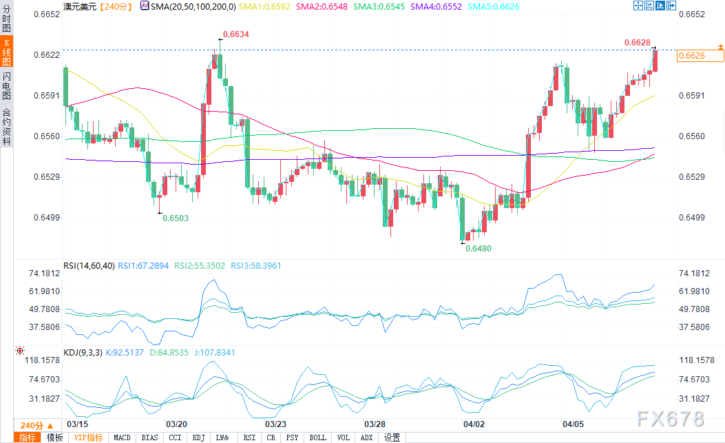 北京时间周二(4月9日)20:52,欧元/美元报1.0882,涨幅0.22%。美元/日元报151.757/768,跌幅0.01%。澳元/美元报0.6634/35,涨幅0.45%。