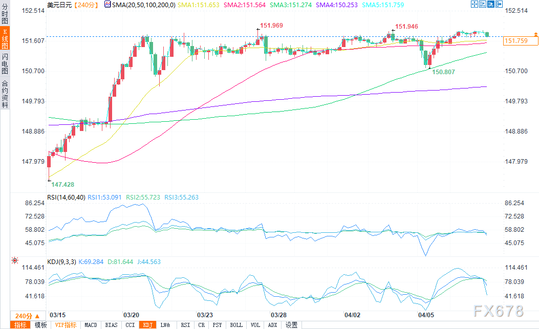 技术面上,美元/日元价格位于30SMA上方,显示多头重新领先。之前的大幅看跌走势已经逆转,现在价格正在接近关键的152.00关键阻力位。