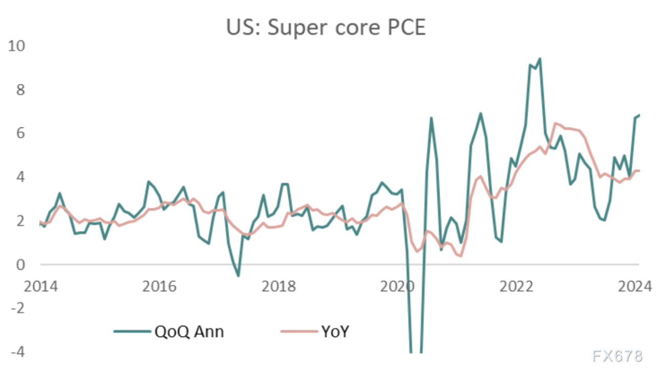 美联储经常引用一种被称为“超级核心”的通胀指标,该指标包括服务业通胀、能源和住房通胀。这一措施剔除了燃料等不稳定项目,并消除了住房数据的影响,因为住房数据往往存在巨大的滞后。