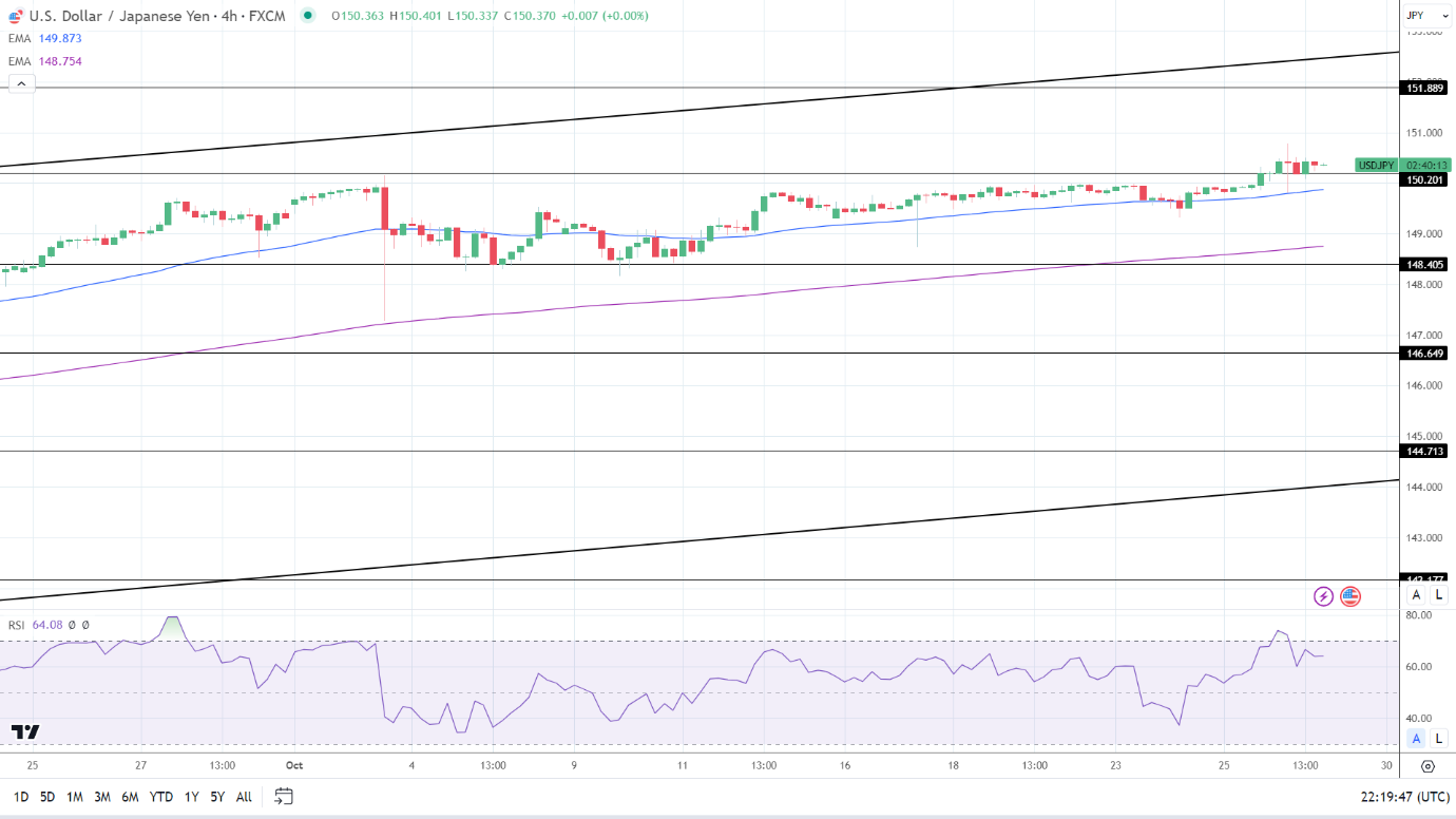 14-4小时RSI为64.56,表明美元/日元在进入超买区域之前将升至151。