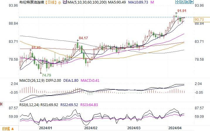 北京时间4月11日11:07 布伦特原油连续 报 90.75 美元/桶