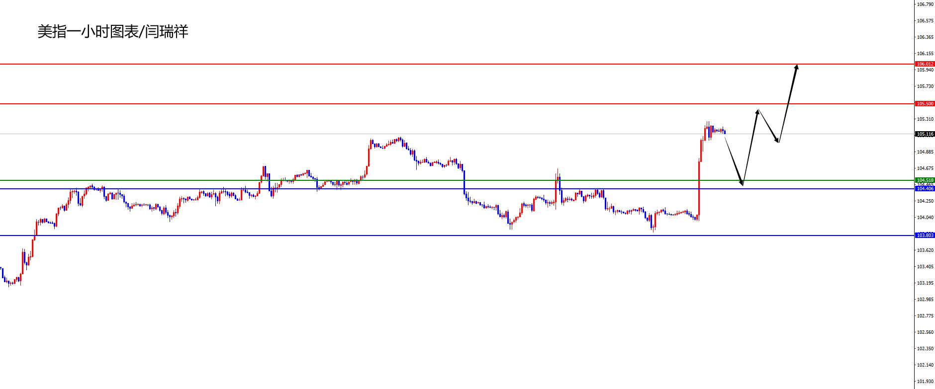 美指104.40-50区间多,防守5美金,目标105-105.50-106
