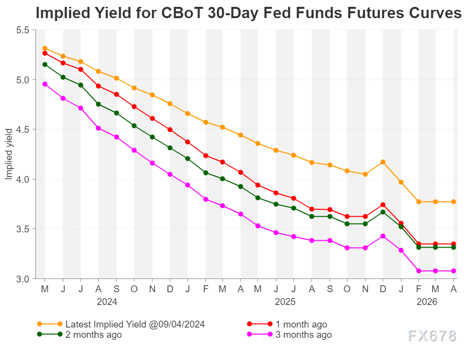 (联邦基金利率走势,随着通胀下降进程缓慢,降息预期降低)