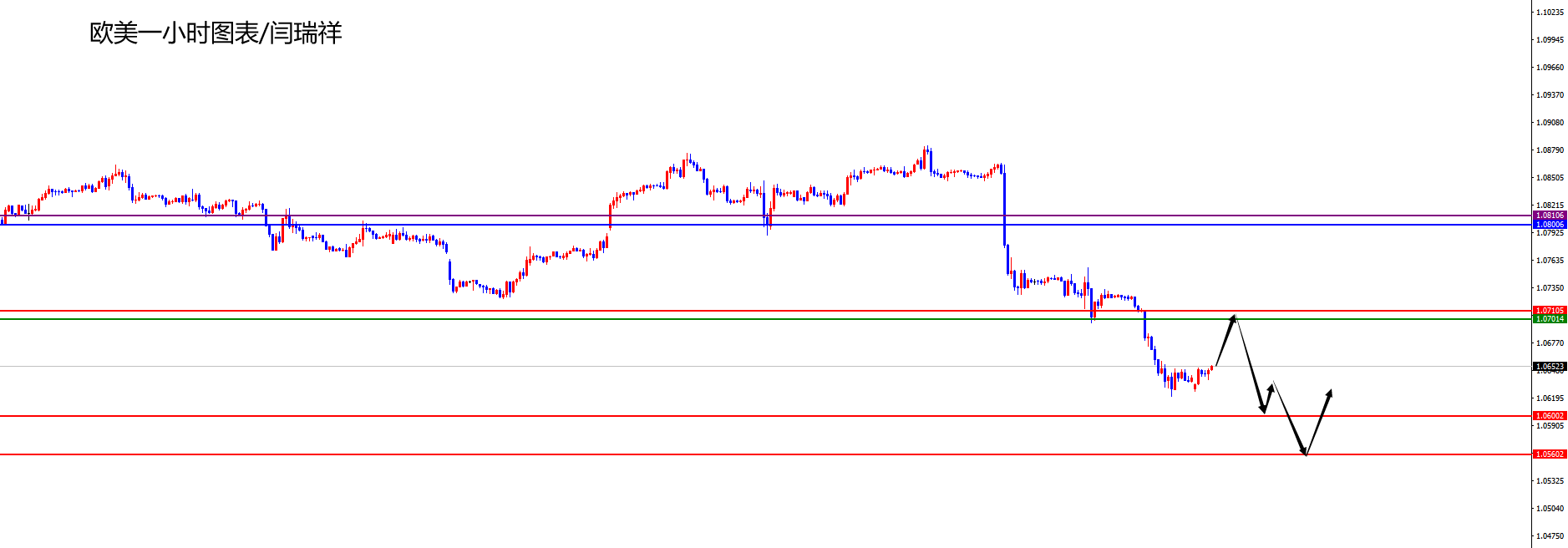 欧美1.0700-10区间空,防守40点,目标1.0650-1.0600-1.0560