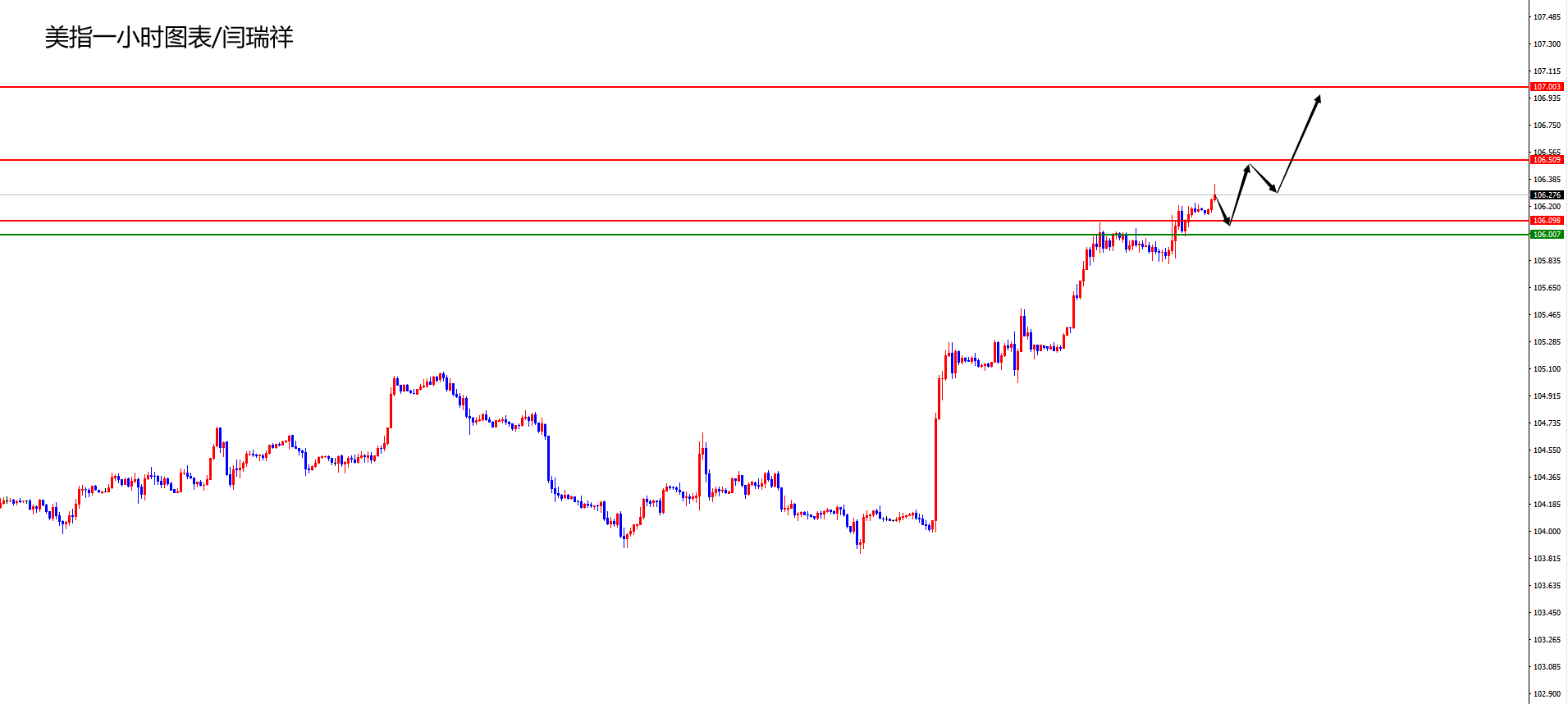 美指106.00-10区间多,防守5美金,目标106.50-107