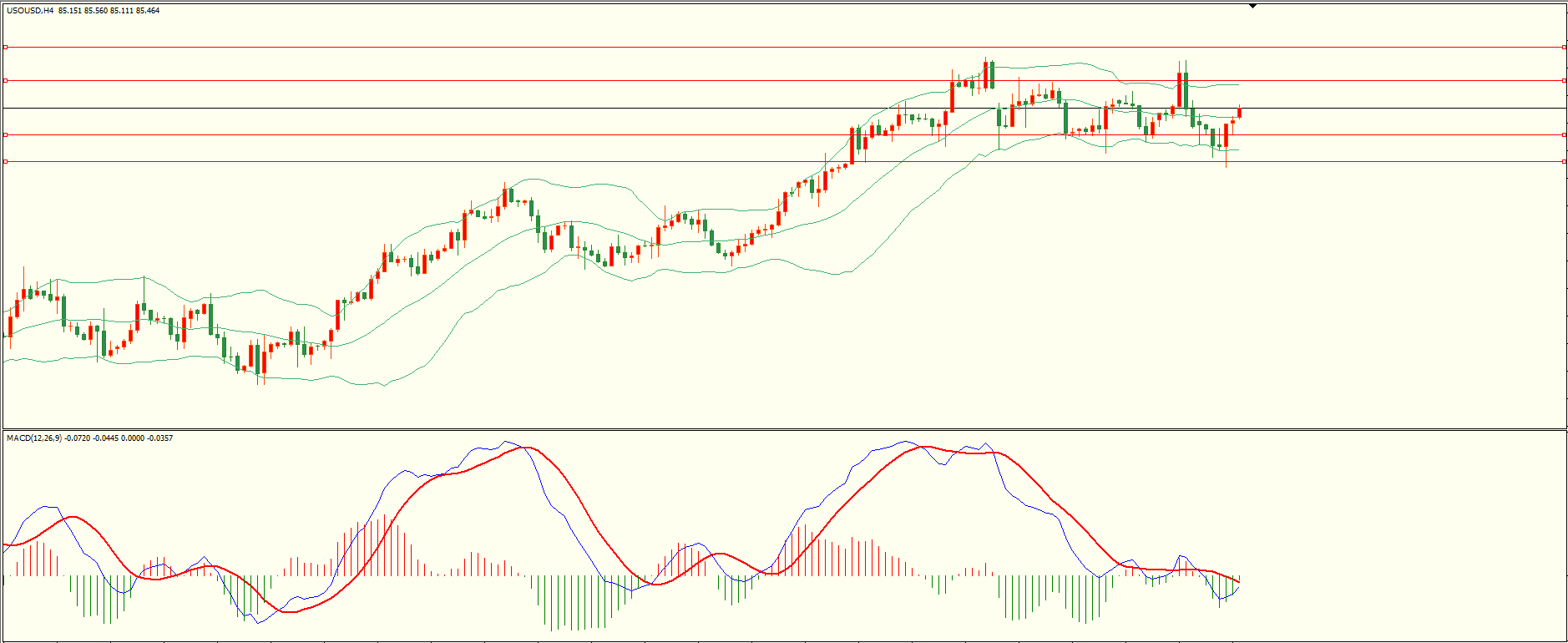 原油昨日亚市开盘后延续下行,盘中回落至第一支撑附近展开反弹,日线报收十字星线,总体来看,日线布林中轨依然构成下行首要支撑,同时需留意前高压力区,突破后方可继续,从4H来看,布林中轨基本走平,MACD零轴附近运行,日内下方首要支撑84.50-60,第二支撑83.70,上方阻力86.30-40,87.40-50,保持在第一支撑上方短线有望回测第一阻力。