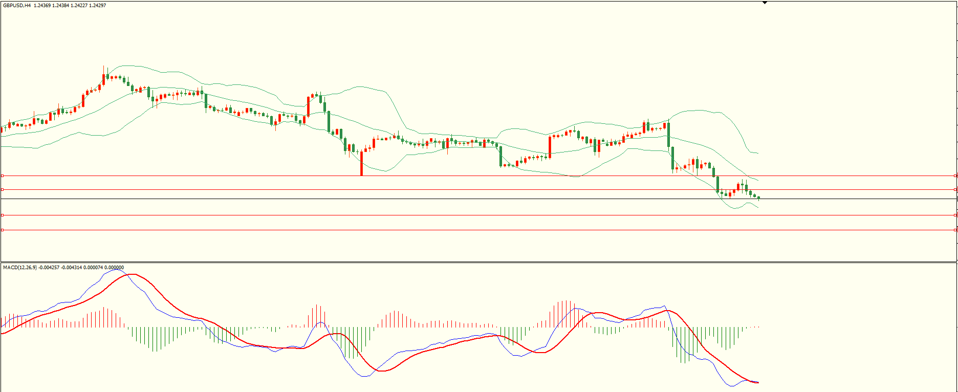欧元昨日反弹至第一阻力下方继续走低,尾盘时段略有反复,日线报收上影线小阴线,空头格局保持,从4H来看,布林中轨偏下,MACD零轴下方运行,日内上方首要阻力1.0645,第二阻力1.0685-90,下方支撑1.0565,1.0510-20,保持在第一阻力下方短线有望测试第一支撑。