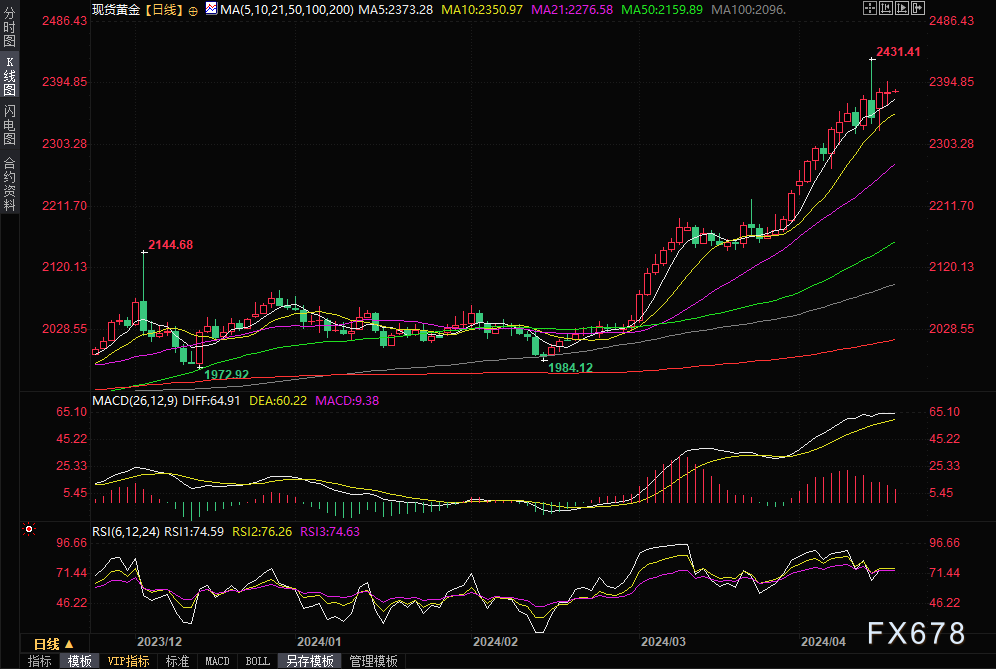 FXStreet首席分析师Valeria Bednarik指出,从黄金技术面来看,多头仍然占据上风,金价目标是再度突破2400美元/盎司水平。