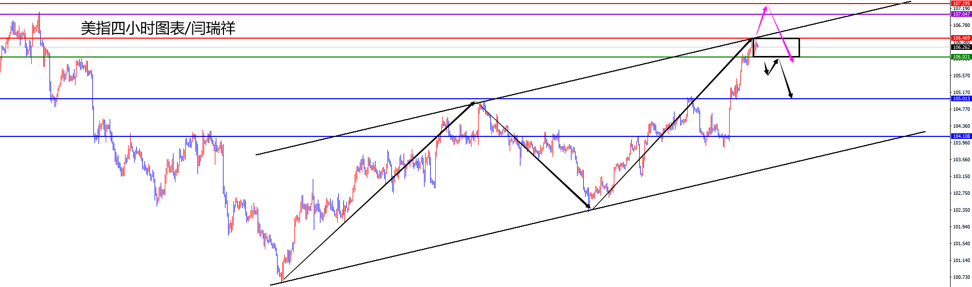 美指暂时关注106区域得失,谨防价格进行跌破测试日线支撑