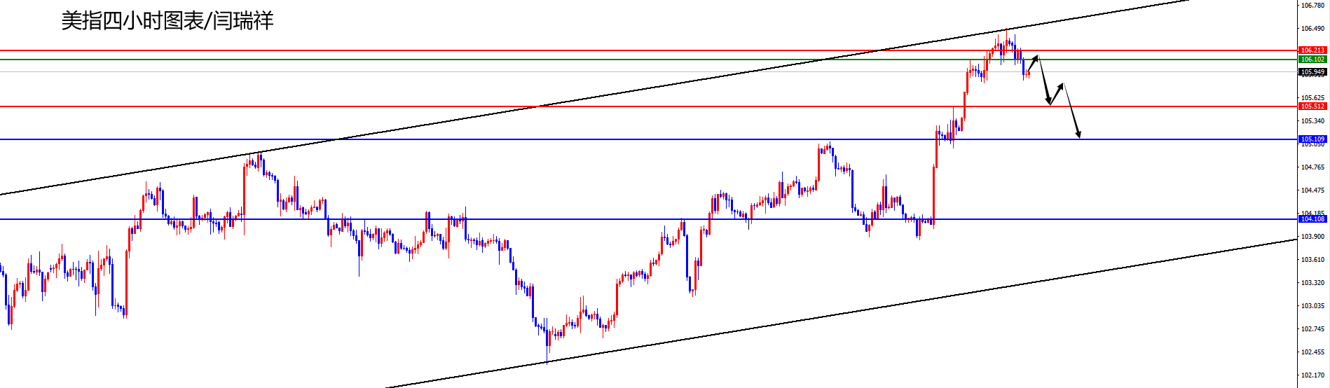 美指106.10-20区间空,防守5美金,目标105.50-105.10