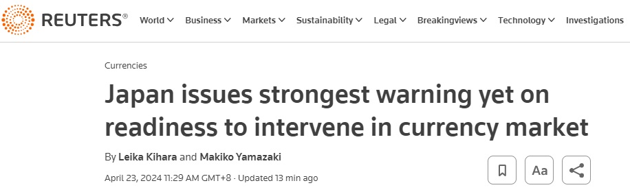 日本上一次干预外汇市场是在2022年(分别在当年9月和10月),目的是支撑日元。