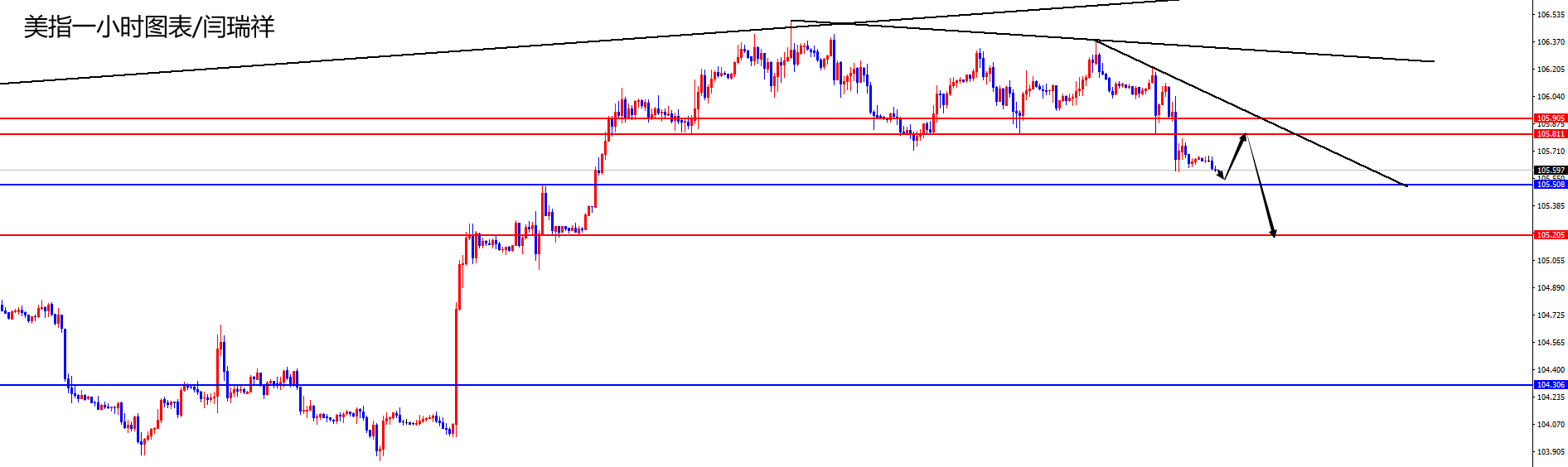 美指105.80-90区间空,防守5美金,目标105.50-105.20