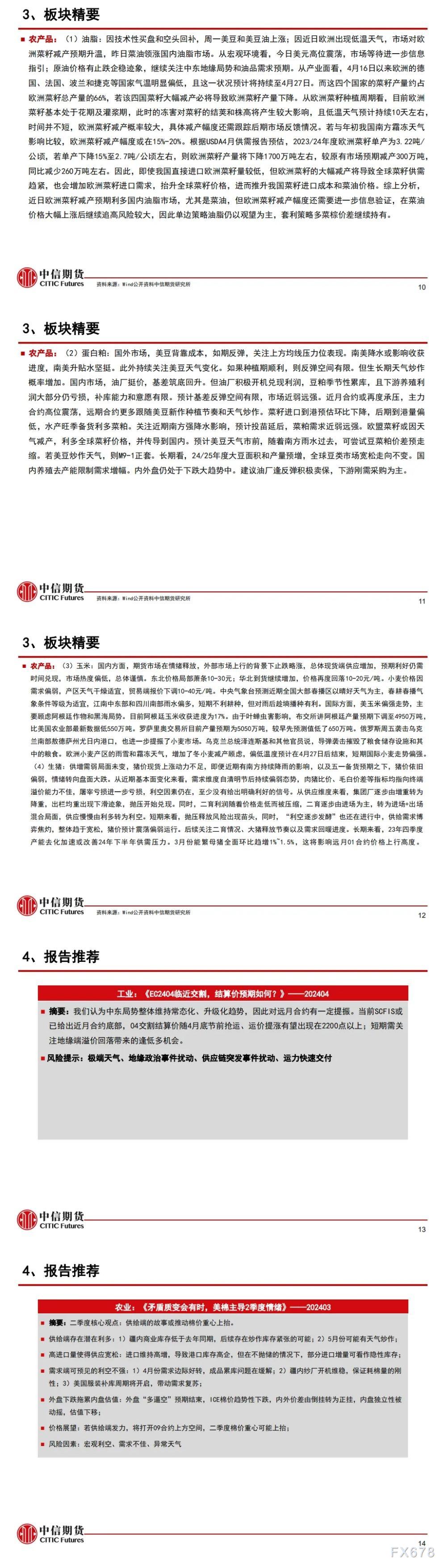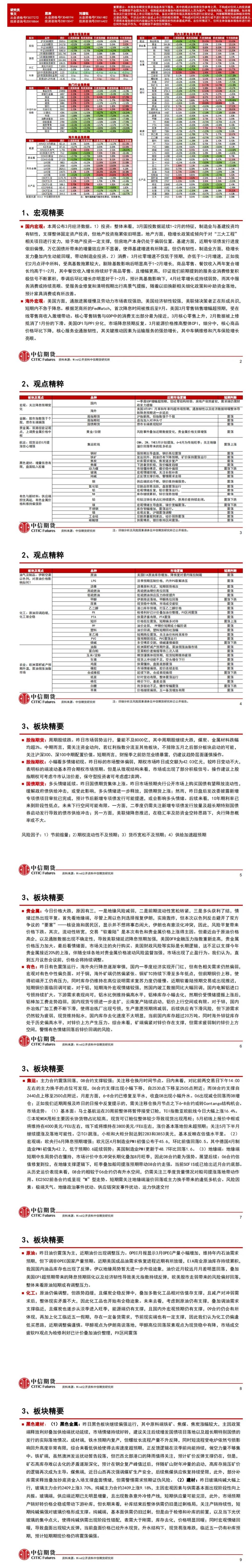 以下为中信期货今日晨报对股指、国债、贵金属、原油能源化工、有色金属、螺纹钢材焦炭黑色系玻璃纯碱等建材、玉米生猪油脂蛋白粕等农产品等期货的操作建议和提醒。