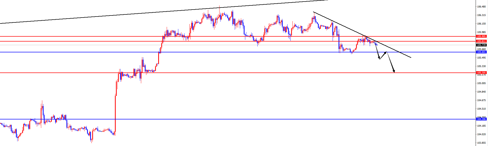 美指105.80-90区间空,防守5美金,目标105.60-105.20-104.30
