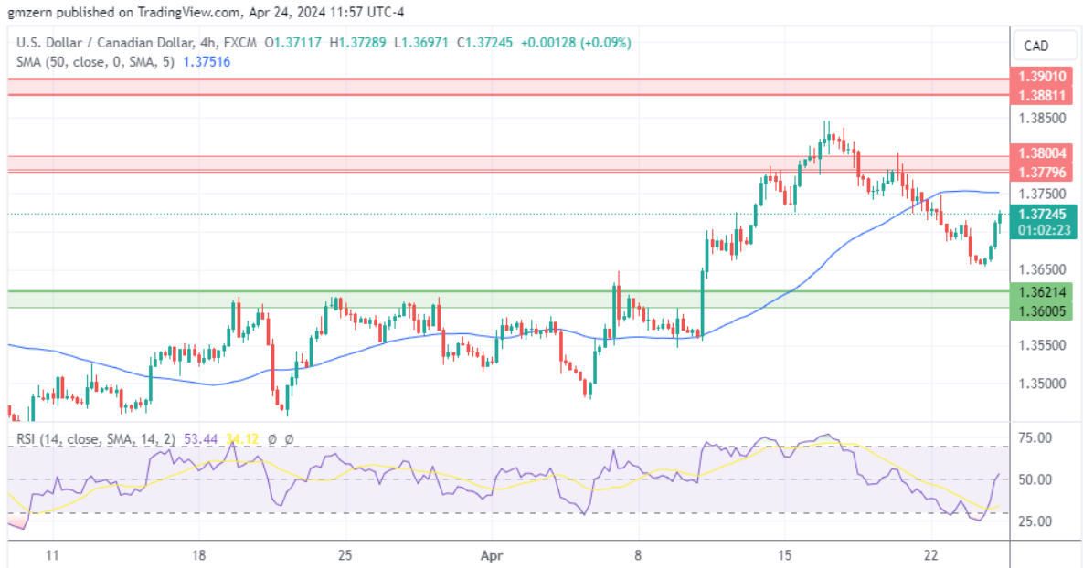 如果美元/加元收于50移动平均线1.3751之上,它将向最近的阻力位1.3780 – 1.3800移动。