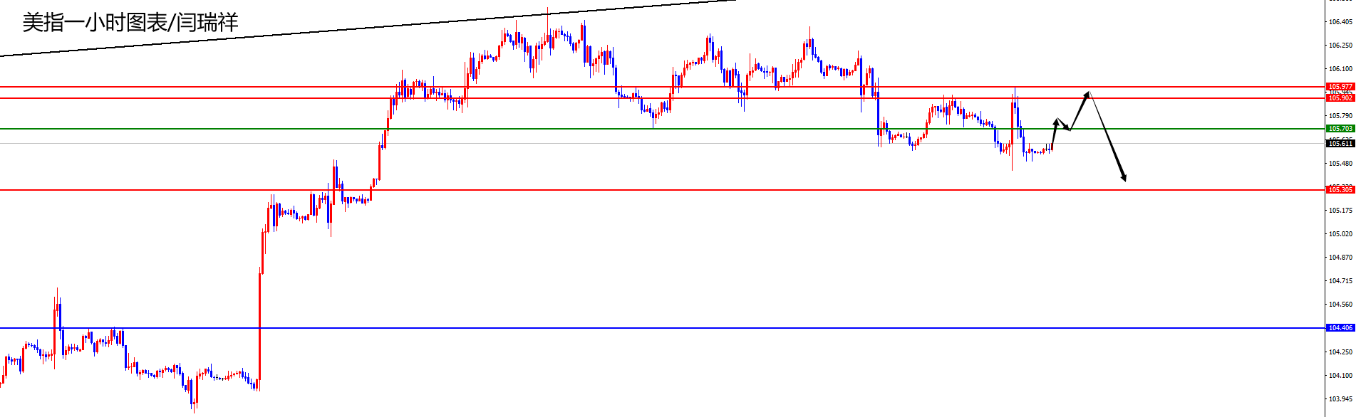 美指105.90-106区间空,防守5美金,目标105.50-105.30-104.40
