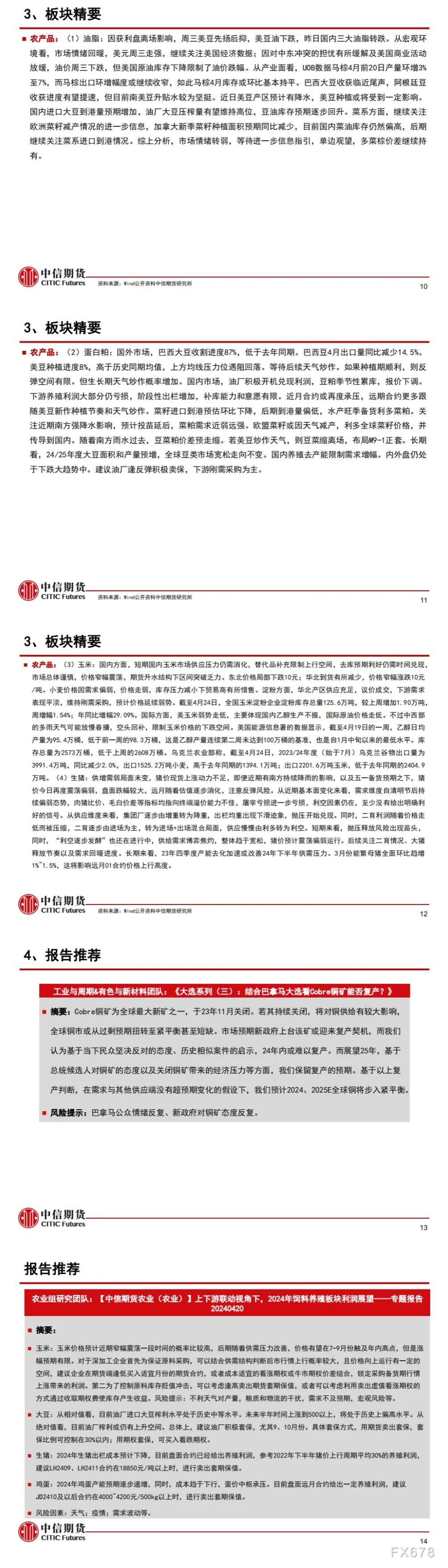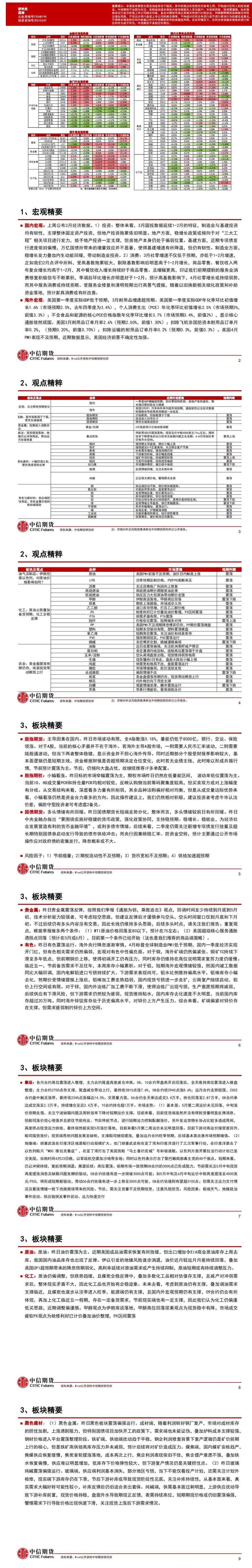 以下为中信期货今日晨报对股指、国债、贵金属、原油能源化工、有色金属、螺纹钢材焦炭黑色系玻璃纯碱等建材、玉米生猪油脂蛋白粕等农产品等期货的操作建议和提醒。