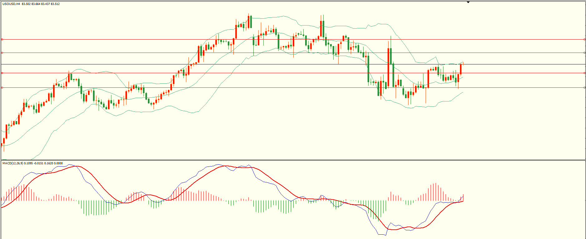 原油昨日回调至第一支撑上方震荡反弹,至收盘触及第一阻力略有反复,日线报收下影线中阳线,短线的多空争夺尚未结束,目前上方临近前低密集压力区,收复后方可继续,从4H来看,布林中轨拐头向上,MACD零轴附近运行,日内下方首要支撑82.80-90,第二支撑81.85,上方阻力84.30,85.20-30,保持在第一支撑上方短线有望测试第一阻力。