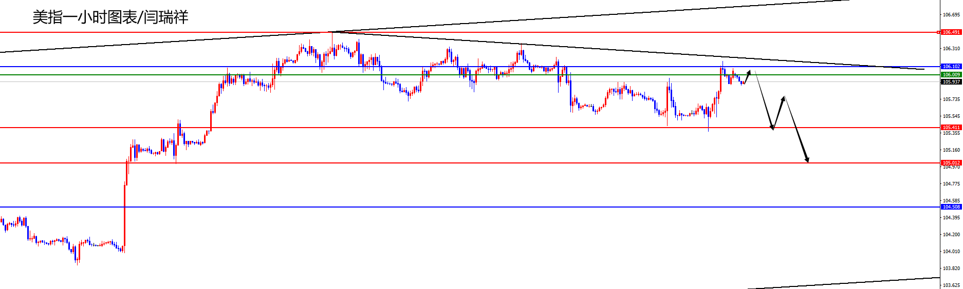 美指106.00-10区间空,防守5美金,目标105.40-105
