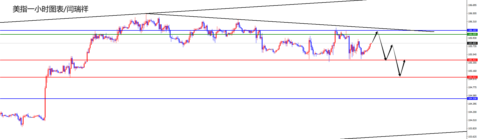 美指106.00-10区间空,防守5美金,目标105.40-105