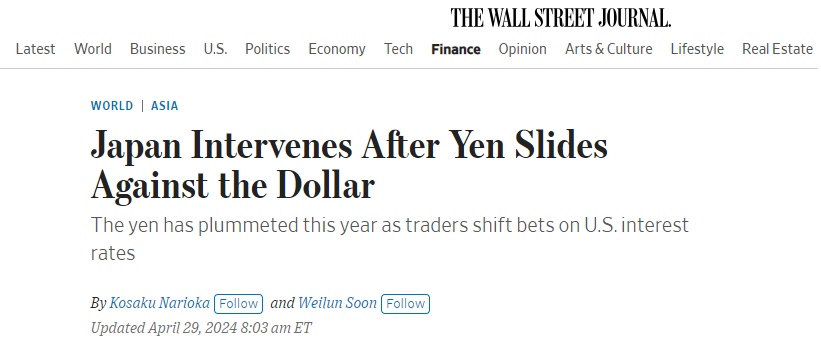 此前数周,交易员一直猜测,日本政府正准备出手帮助陷入困境的日元。交易员们越来越看空日元,尽管日本股市出现牛市,日本经济也出现更广泛的改善,但日元仍在下跌。