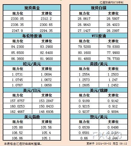 本文提供黄金、原油、美元指数、欧元、英镑、日元、瑞郎、澳元支撑阻力位。