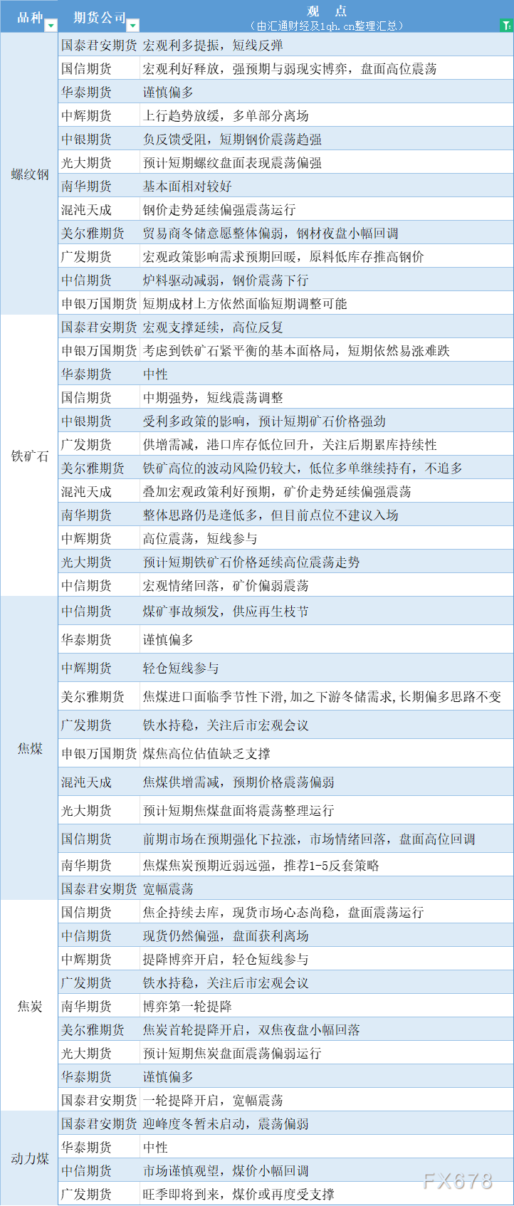 期货公司观点汇总一张图:10月31日黑色系(螺纹钢、焦煤、焦炭、铁矿石、动力煤等)
