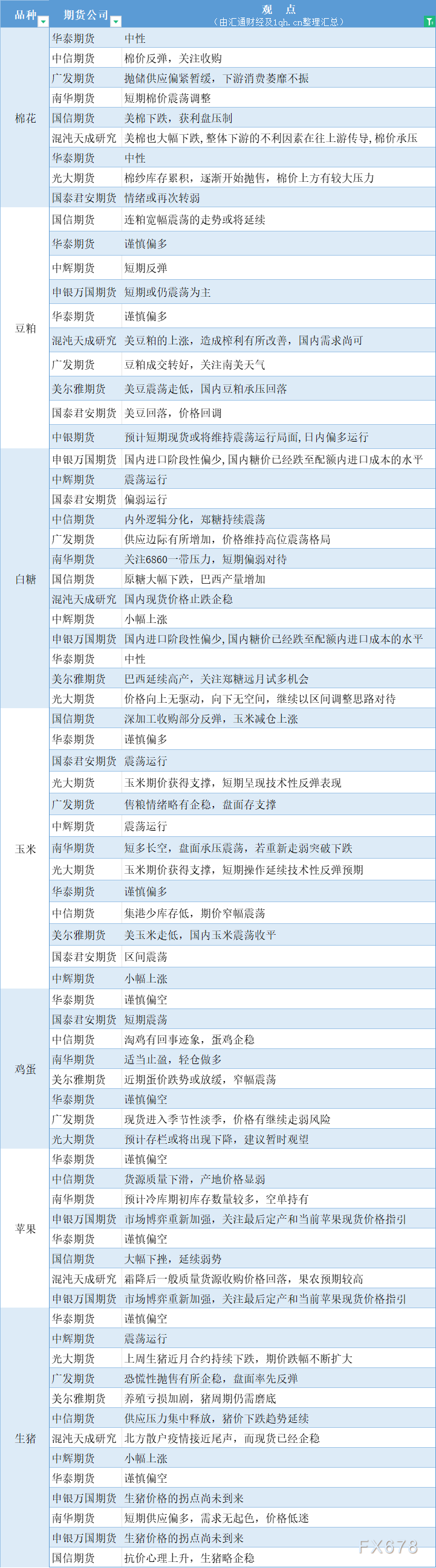 期货公司观点汇总一张图:10月31日农产品(棉花、豆粕、白糖、玉米、鸡蛋、生猪等)