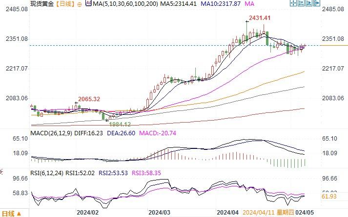 周一(5月6日),金价攀升逾1%,至每盎司2,324.94美元。此前美国就业数据不及预期,提振了美联储今年晚些时候可能降息的预期,美元指数连续走软,帮助稳住了黄金的回撤势头。而中东冲突局势升级,令黄金多头士气回升。